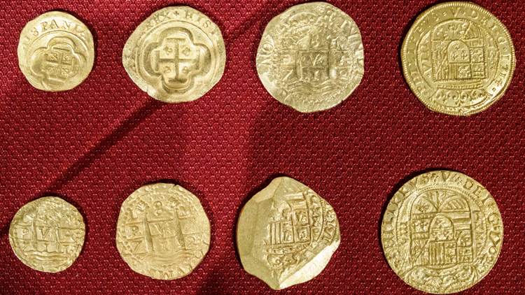 A team of divers searched the sunken ships. They found more than a thousand silver and gold coins. It is thought the coins were made in Bolivia, Peru, and Mexico.
